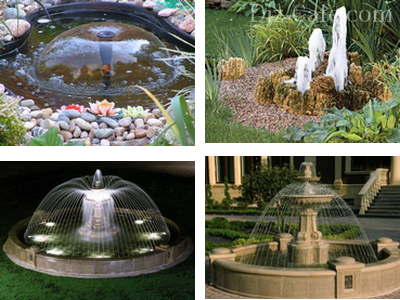 Погружной тип – напоминает гейзер который выталкивается из глубины воды. Насосная система в этом случае устанавливается на дно чаши, ее дополняет трубопровод и специальные разбрызгиватели, которые контролируют форму потока.