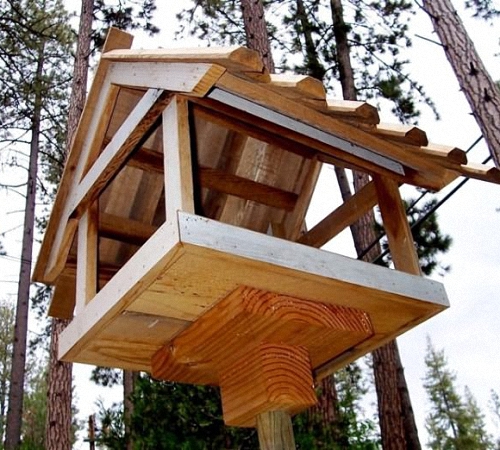 - Кормушку нужно делать с большой крышей, тогда в нее не попадет много осадков.