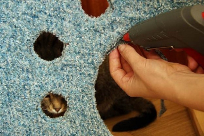 Используемый клей не должен выделять жуткий неприятный запах после высыхания, а также следует отдавать предпочтение клею, который максимально безопасен для животного, т.е. ПВА и его аналоги. Дело в том, что кошка может пытаться грызть склеенный элемент, из-за чего клей может попасть внутрь со слюной. Обратите на это внимание.