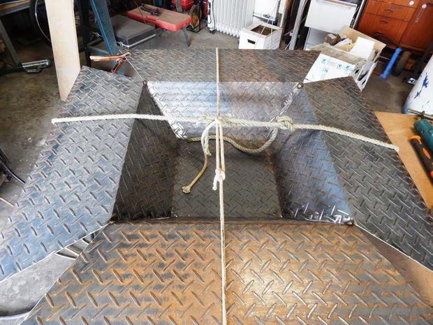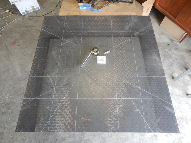 Чтобы сделать часть чаши, вам понадобится кусок стальной пластины 1200 мм x 1200 мм. Это половина стандартного листа, так что понадобится только один разрез, чтобы сделать начальный квадрат. Для изготовления стенда вам понадобится около 11 м арматуры 12 мм или стального стержня.