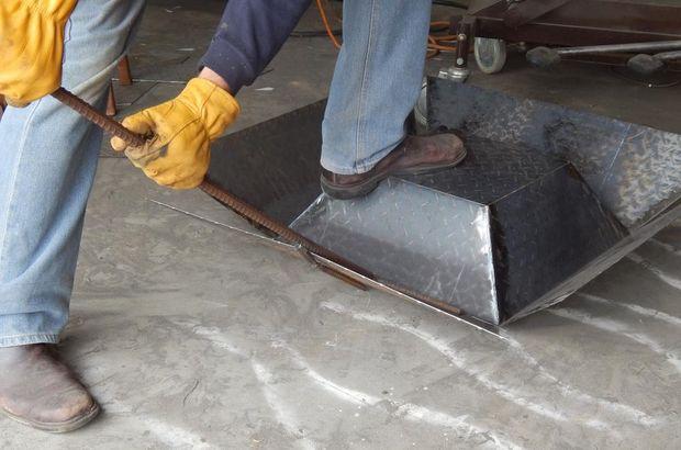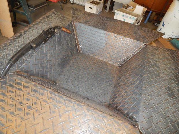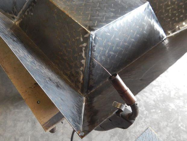 - Когда закончите с рамой, установите дно. Прежде чем приваривать его, проверьте, идеально ли оно подходит. Если это не так, зачищайте до тех пор, пока оно ровно не встанет в раму.