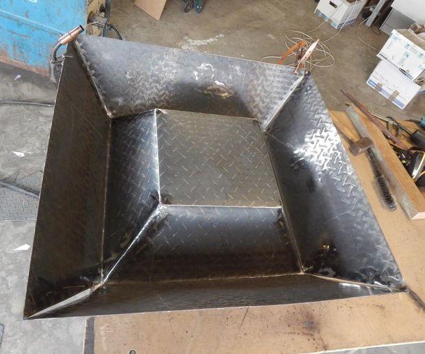 Еще один похожий вариант очага костра из металла, только квадратный и на раме. Дизайн очень простой и не должен быть слишком сложной задачей для тех, у кого есть основные навыки в сварке и опыт в слесарном деле. На фотографиях вы заметите, да и сам автор утверждает, что он абсолютный любитель, так что надеюсь, что этот факт вдохновит других любителей на реализацию этого и других проектов. В данном случае автор использовал только простые метрические измерения, без компьютерных программ и сложных чертежей.