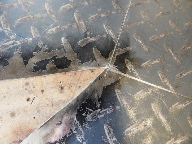- Приварим лепестки друг к другу, чтобы зафиксировать форму. Сначала сделаем прихватки и немного подровняем молотком.