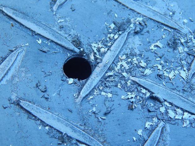 Отверстие, которое осталось от газового вентиля, необходимо заглушить. Для этого вырезаем подходящий кусок металла, вставляем в отверстие, после чего обвариваем и зачищаем сварной шов.