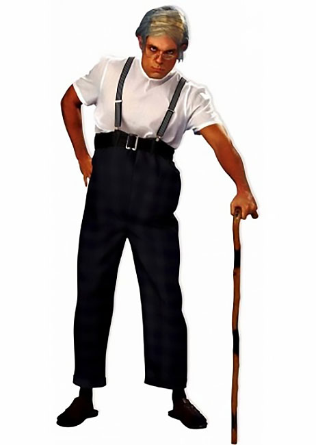 Интересная идея современного костюма — дяди Берта. Сделать такой совсем просто. Наряд состоит из штанов и подтяжек, домашних тапок и трости. Все это найдется в доме у каждого «оригинала», обдумывающего идеи для новогодних переодеваний. Используйте серебряный лак для «седины» в волосах и очки.