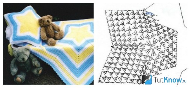 Вязать звездочку по времени займет больше, нежели круглый, но и выглядеть он будет более интересно.