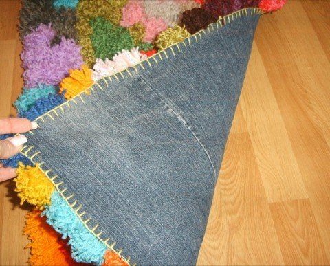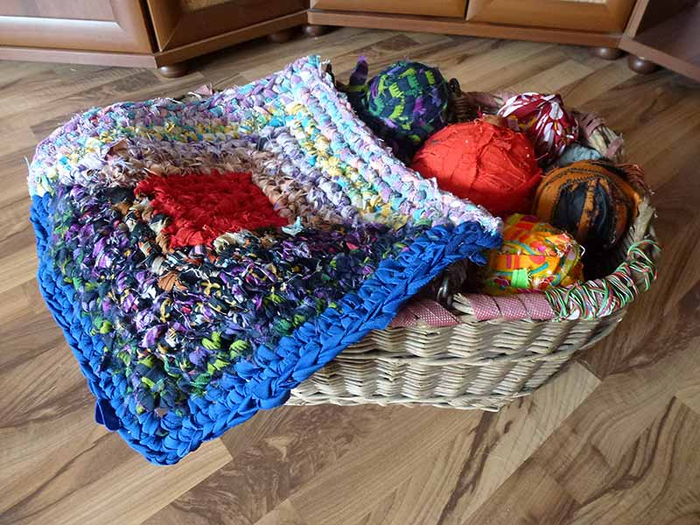 Не всегда нужно изделие высокой эстетики. Иногда достаточно простенького половичка, который хочется связать из подручного материала. Для этого можно воспользоваться остатками пряжи, обрезками ткани. Часто в дело пускают ненужные изношенные вещи. Подойдут джинсы, платья и другая одежда.