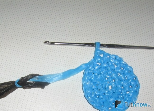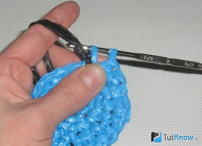 Теперь постепенно прибавляем петли, если этого не сделать, у вас получится вязаная шляпка. Хотя ее тоже можно смастерить из полиэтиленовых пакетов, но в другой раз.
