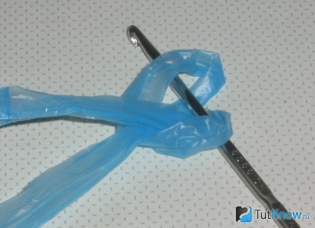 - В образовавшуюся петлю ленты проденьте ее оба конца крючком или руками.