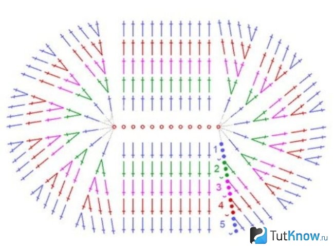 Схемы для ковриков могут быть различным. Если вы хотите создать овальное изделие, тогда воспользуйтесь следующей.