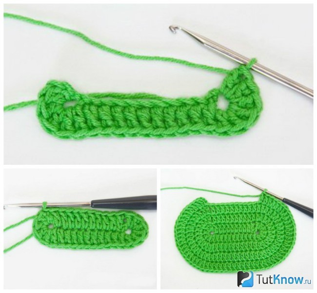Просовываем крючок в кольцеобразный кончик нити и делаем первую петлю.