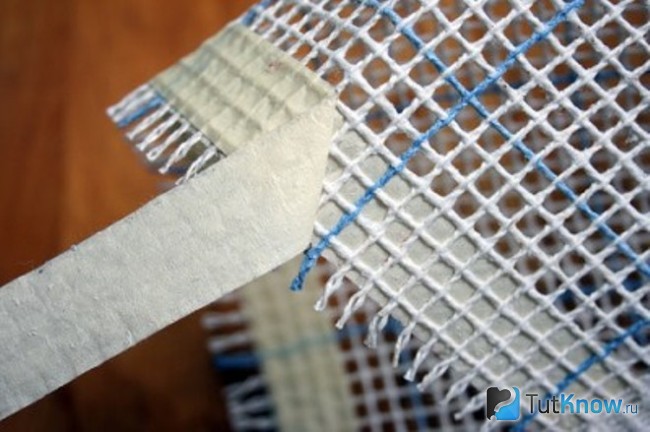 Края сетки проклейте малярным скотчем с обеих сторон по периметру.