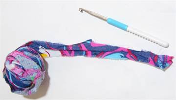 - Пряжа из старых футболок двух цветов.