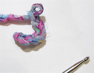 - Берут полосы ткани чуть больше ширины основы и плетут косички, не доплетая до конца.