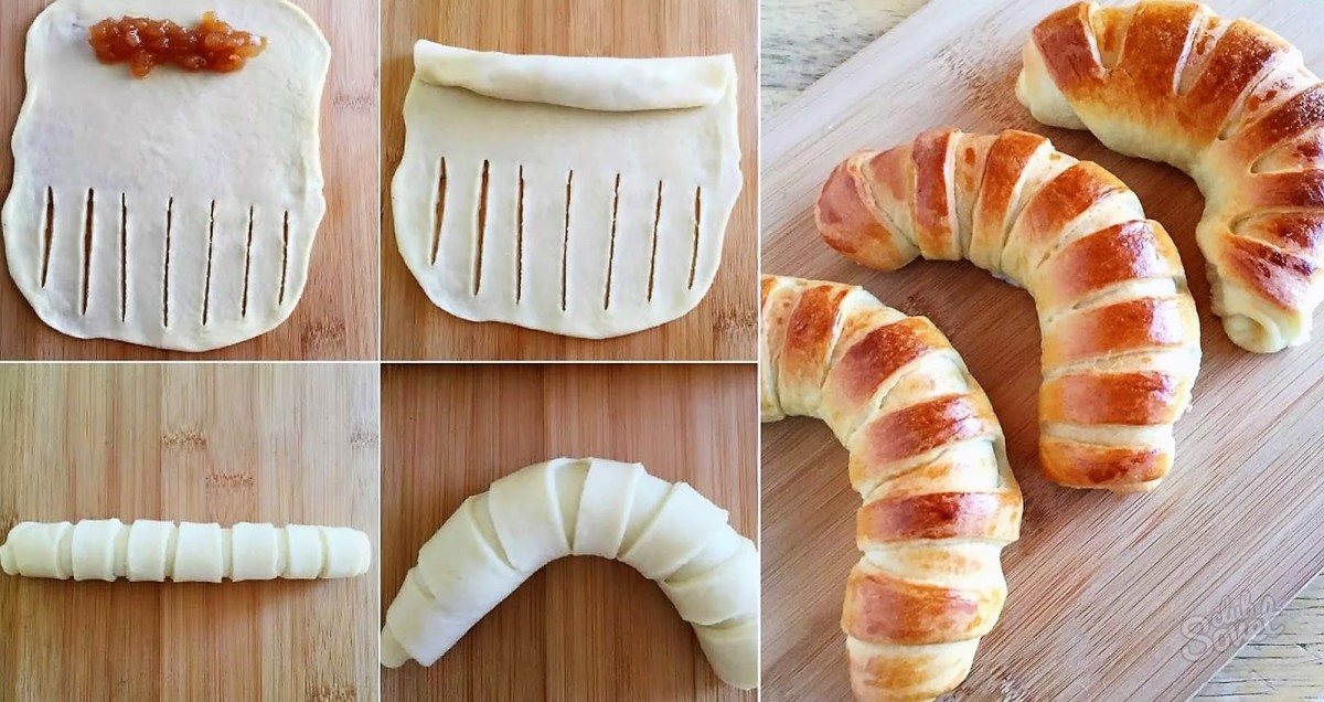 Выпечка из слоеного теста не украшается, а разнообразно и красиво разделывается. Способы разделки, например, в виде: завитка; бабочки, бантика, косички, круассана, половинки круассана, треугольника, улитки, фонарика, цветочков и много других.