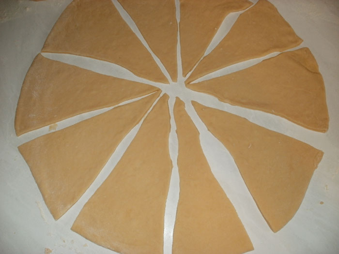 «ÐÑÑаÑÑанѻ. РаÑкаÑайÑе кÑÑг и ÑазделайÑе его на ÑÑеÑголÑники, ÑазÑÐµÐ·Ð°Ñ Ð¾Ñ ÑенÑÑа к внеÑÐ½ÐµÐ¼Ñ ÐºÑаÑ. ÐнеÑнÑÑ ÑÑоÑона ÑÑеÑголÑника в ÑеÑедине делаеÑÑÑ Ð½Ð°Ð´Ñез и Ñ ÐµÐ³Ð¾ оконÑÐ°Ð½Ð¸Ñ Ð²ÑкладÑваеÑÑÑ Ð½Ð°Ñинка. СвоÑаÑиваеÑÑÑ ÐºÑÑаÑÑан Ð¾Ñ Ð²Ð½ÐµÑнего кÑÐ°Ñ Ðº ÑенÑÑÑ.