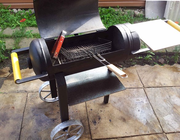 - Сама форма провоцирует сделать крышку, а это дополнительная защита от непогоды и возможность подольше прогревать мясо или даже подкоптить.