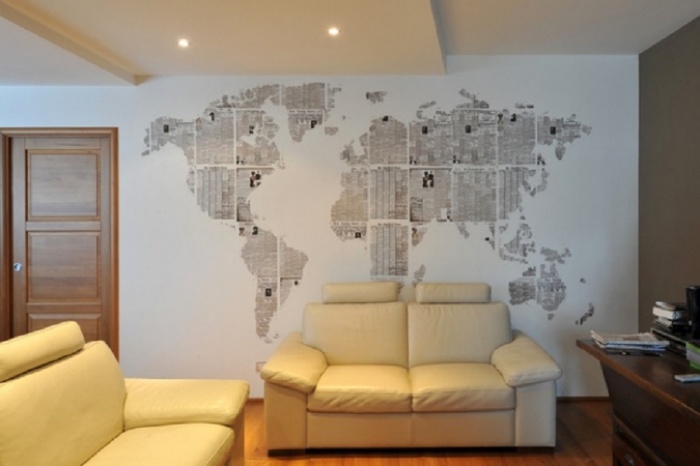 Идей декора стен в квартире для воплощения своими руками масса. Что только не предлагают использовать умельцы. В ход идут даже картонные трубочки, оставшиеся от бумажных полотенец. Их режут на кусочки и выкладывают на однотонно окрашенной стене в затейливые узоры.