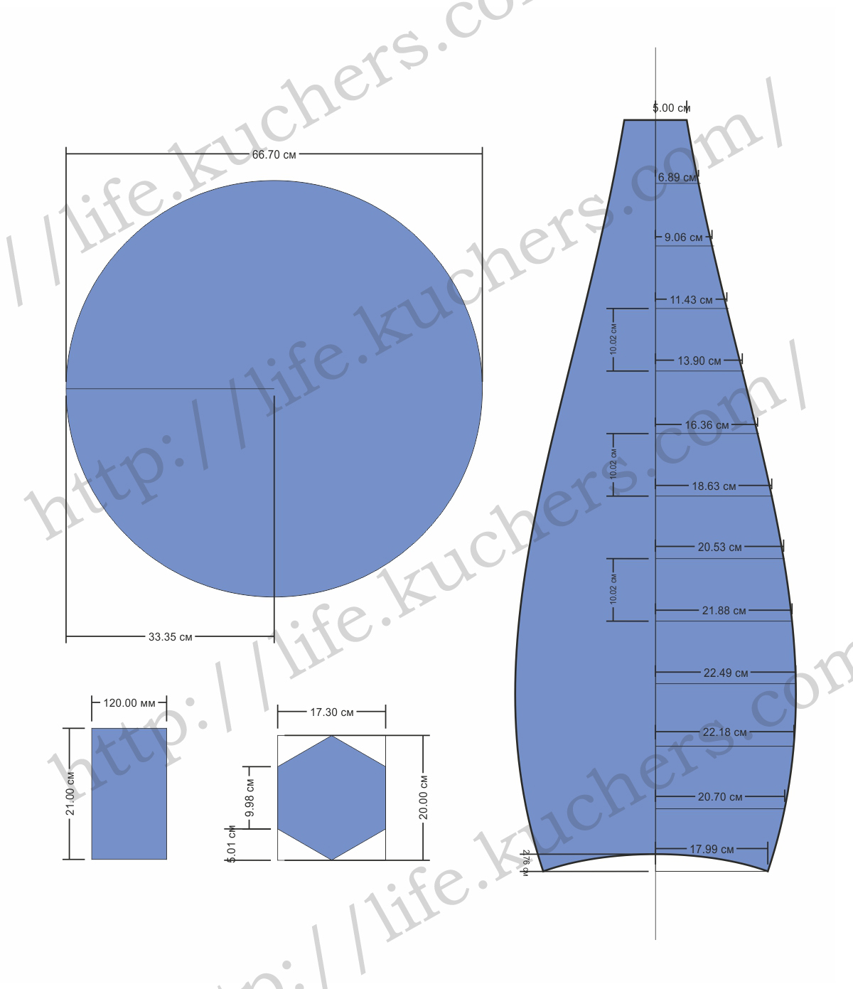 - каждый боковой клин имеет высоту 130 см, верхнюю и нижнюю площадки – соответственно в 20 и 40 см (совпадают с гранями шестигранников), в самом широком месте ширина должна быть 50 см.