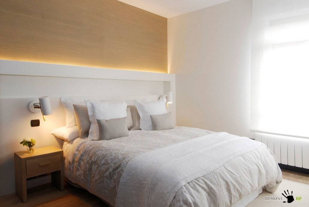 С обоих сторон кровати он будет красиво драпироваться до самого пола, а над изголовьем прогнётся декоративная волна. Глубину этой волны можно регулировать, закрепив ткань булавками. Получится просто и красиво, и при стирке никаких хлопот.