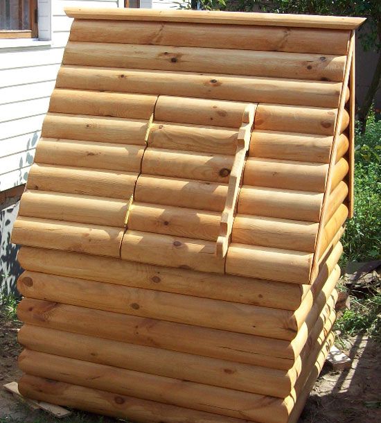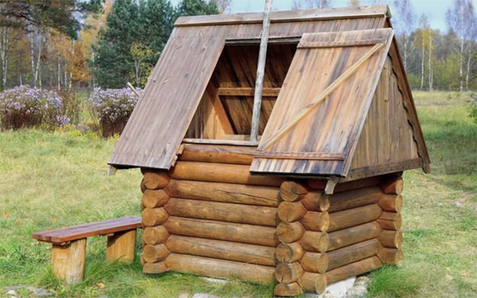 Особняком стоит минималистичная конструкция «шалаш», в которой роль двух стен выполняет крыша, обычно – из профилированного металлического листа, а две других выполняются из материала сруба. Трудно назвать такие сооружения архитектурным шедевром, но свою службу они исполняют исправно.