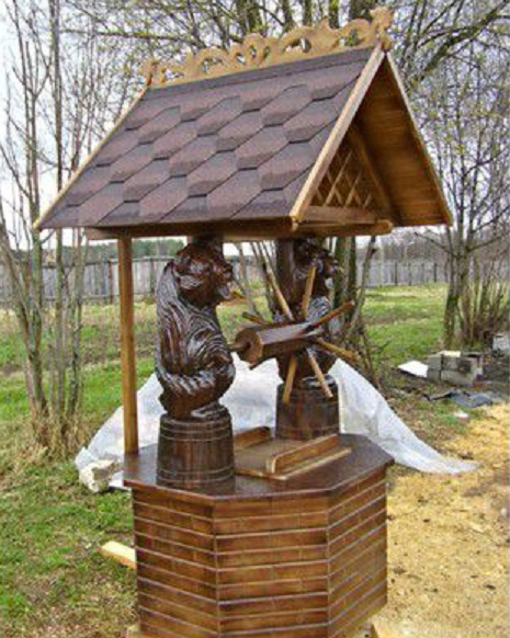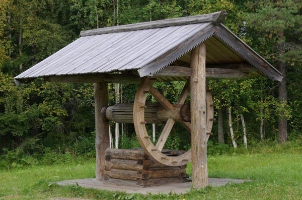 Современные конструкции колодца с деревянной крышей