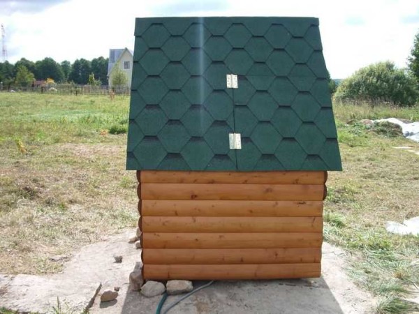 - Постройка в виде домика, практически полностью закрывающая все основные узлы колодца.