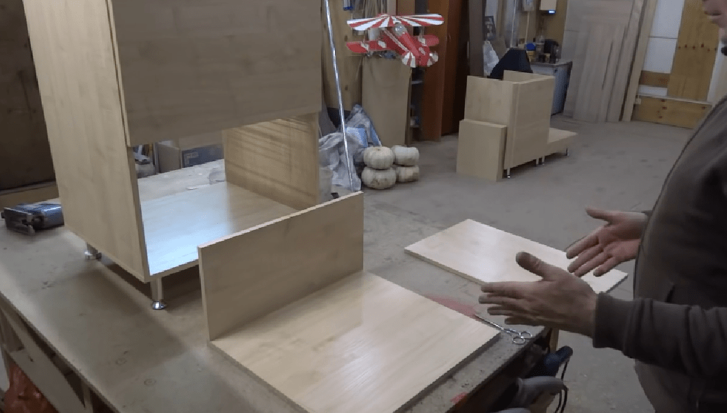 Почти все детали мебели делают из ЛДСП 16 мм (кроме дверей и фасадов).