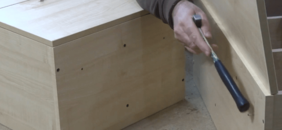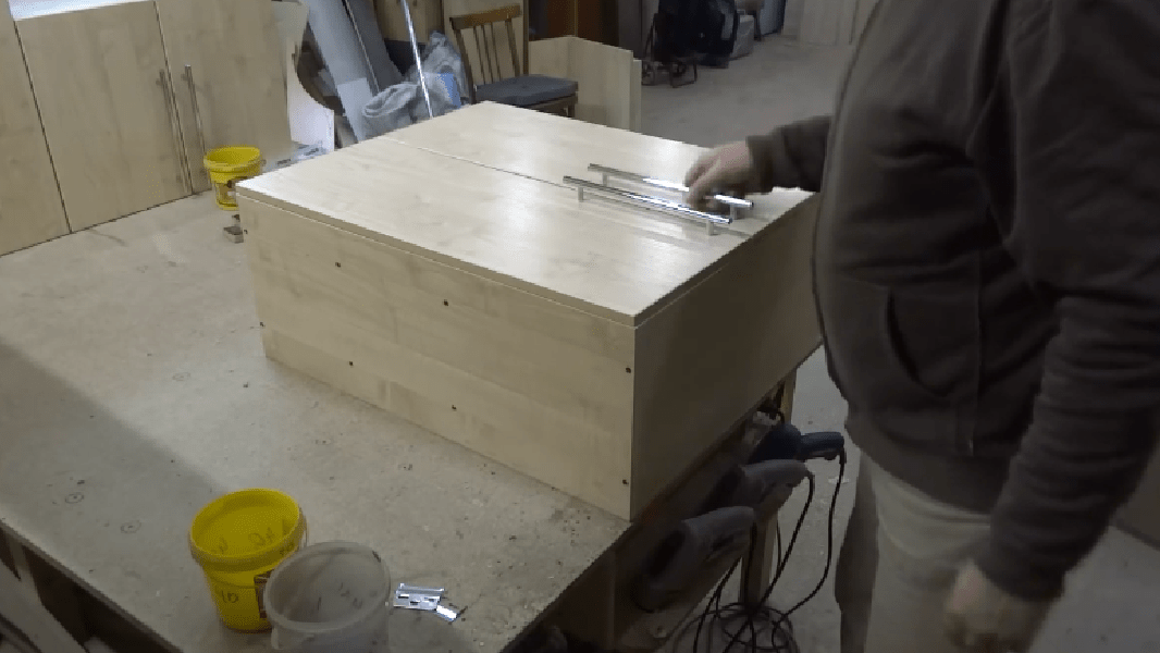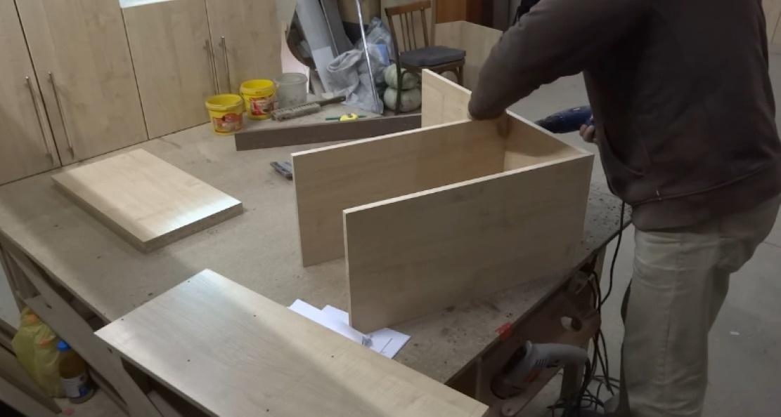 Шкафчики собираются как коробка. К нижней горизонтальной поверхности следует прикрепить вертикальные боковые стены. Крышка прикручивается в последнюю очередь.