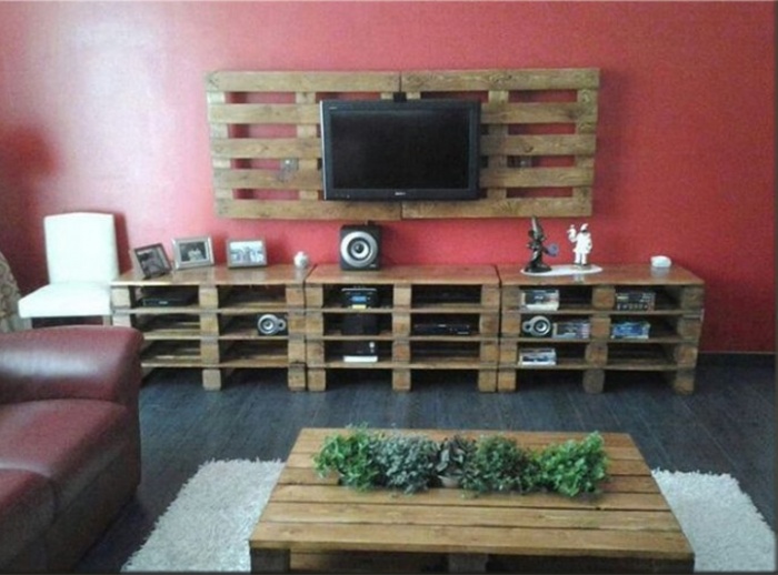 Удивительно, но это простецкое создание прекрасно вписывается практически в любой интерьер. Кстати, внутри поставленных друг на друга паллет образуется полочка, где можно размещать всякие нужные-ненужные мелочи.