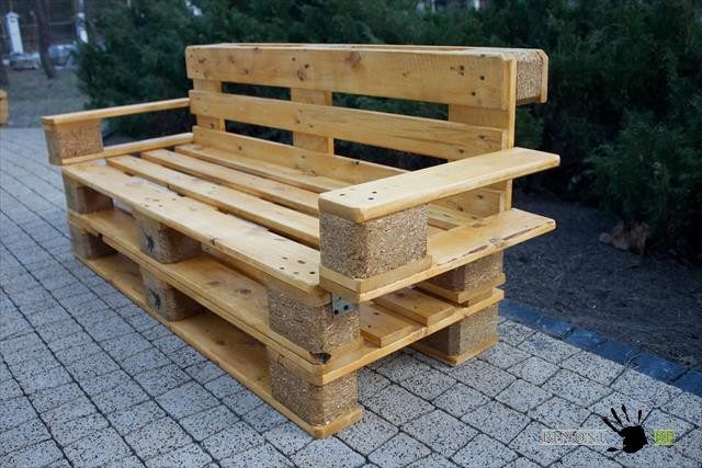 . Эти элементы изготавливают из различных материалов. Самым простым будет использование тех же поддонов, которые прикручиваются вертикально к основанию с двух боков. При этом они выполняют роль опоры и подлокотников. Главное, правильно подобрать размер мебели под параметры человека.