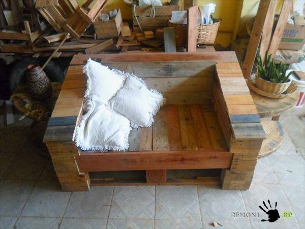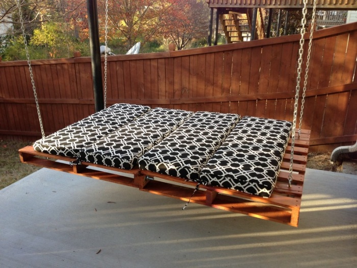Результатом тщательной предварительной подготовки поддонов и творческий подход при создании конструкции станет прочная мебель. Добавить оригинальности помогут комфортные и практичные подушки и матрасы в ярких чехлах.