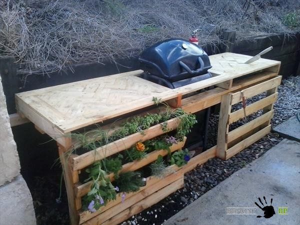 Садовые диваны и столики из поддонов идеально дополнят беседку или веранду. Они впишутся между цветниками и в тени деревьев, но позаботься о дополнительной защите от влаги и гнили. Из паллетов делают аксессуары к мангалу или печи, выносные барные стойки для уличных вечеринок, забавную детскую мебель, качели, скамейки и стулья, подставки для рассады и вазонов.