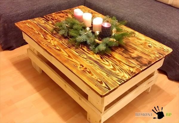 Чаще всего паллеты задействуют при изготовлении низких журнальных или кофейных столиков. Реже из поддонов сооружают высокие обеденные или письменные столы. Вариантов оформления несколько: