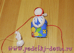 - Куколка украшается пуговицами и лентами.