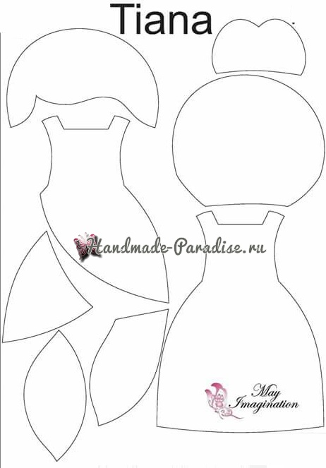 Выкройки куколки из фетра (самые первые картинки выше) — в розовом платьице: