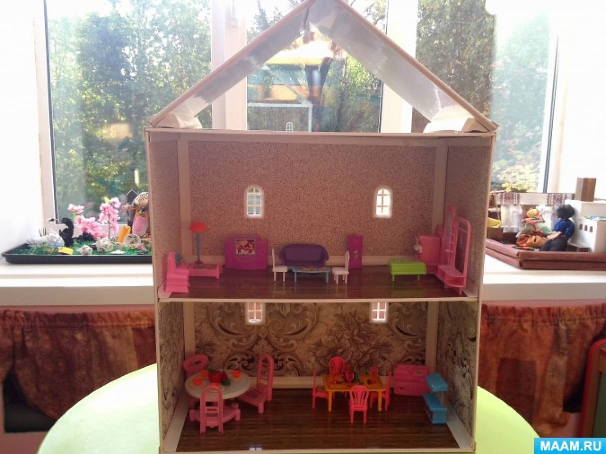 Мастер-классы по изготовлению кукольного домика из картона смотрите ниже.