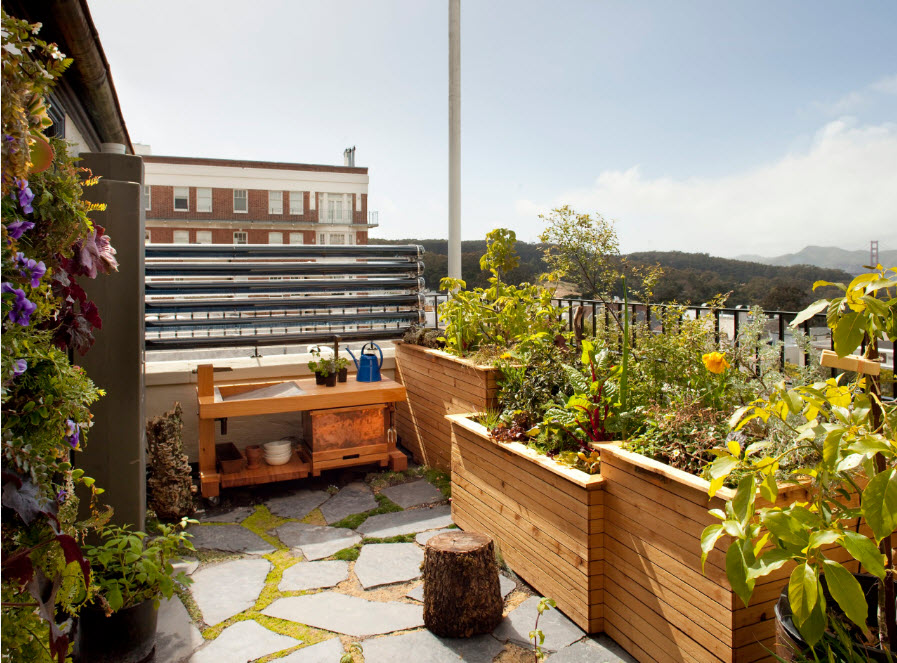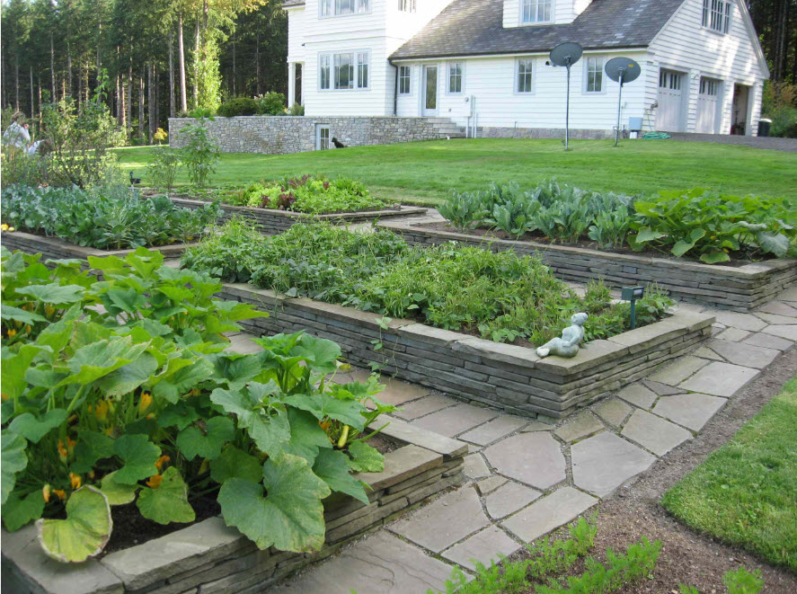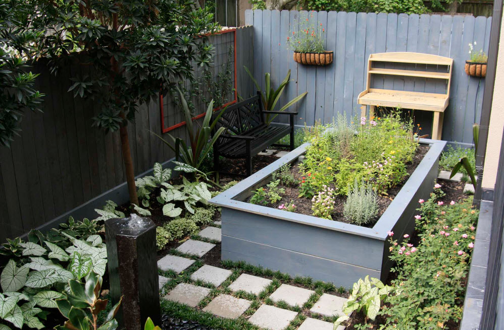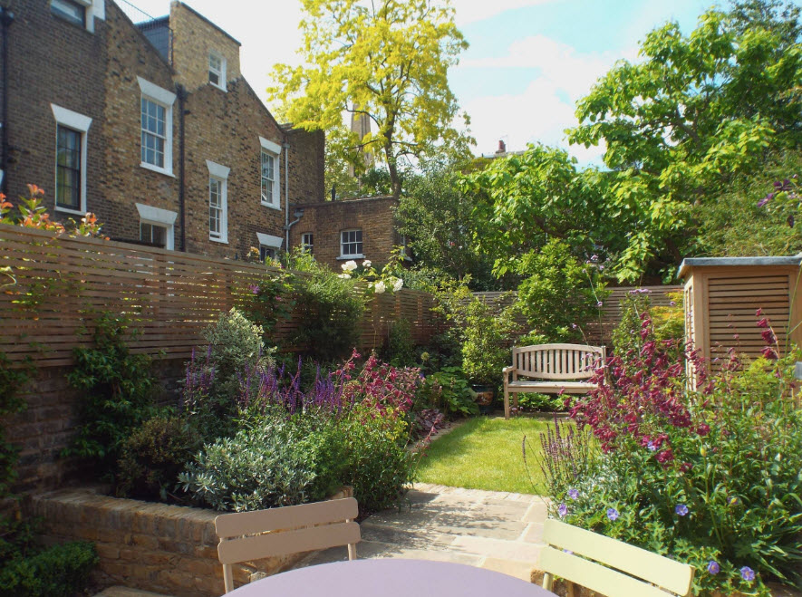 За счет создания разноуровневых площадок можно добиться визуального увеличения пространства сада