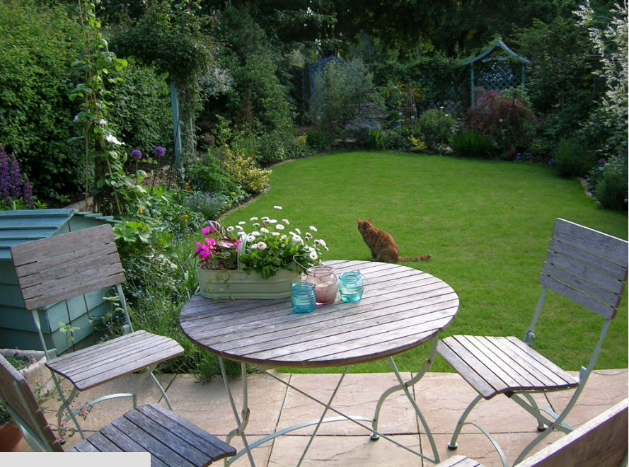 В небольшом саду превосходно смотрятся геометрические формы: квадрат, прямоугольник и круг. Элементы таких конфигураций вносят порядок и ясность в структуру всего садового участка — будь то