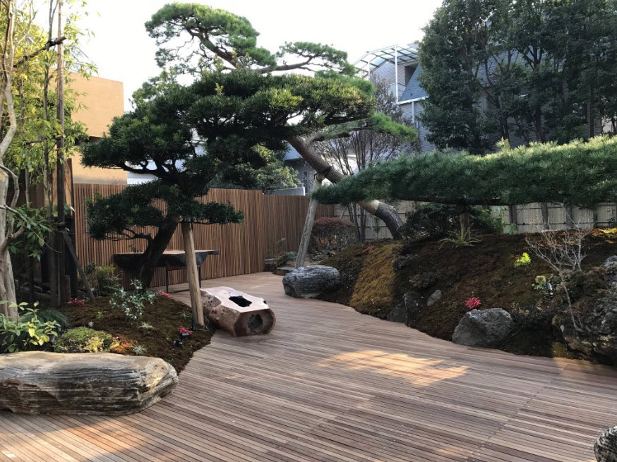 Для японского сада важно гармоничное сочетание трех элементов: воды, камней и растений. Для него характерна асимметричность и естественность. Но каждый предмет, помещенный в отведенное пространство, имеет определенный смысл.