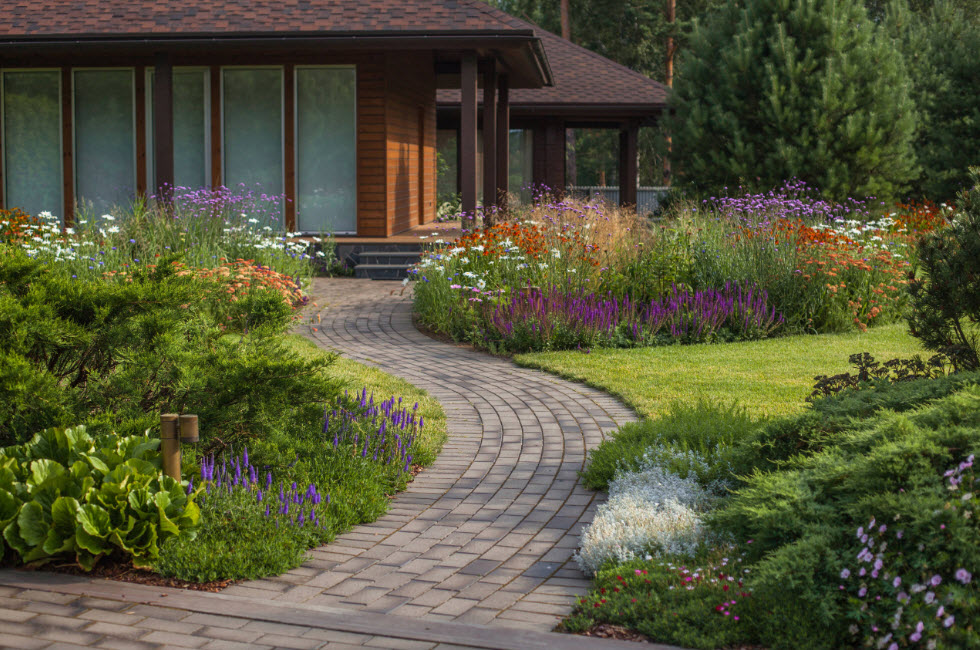 Когда выполнено зонирование и определен стиль оформления участка, все участки внутри купленного земельного надела необходимо связать между собой. Этой цели призваны служить садовые дорожки. Они же могут стать границей между зонами.