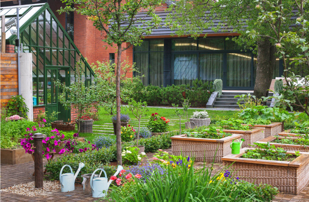 - Комбинированный вариант. Это самый популярный вариант – на таком участке можно и отдохнуть, и потрудиться. Соотношение территории под грядки и отдых выбирается по желанию.