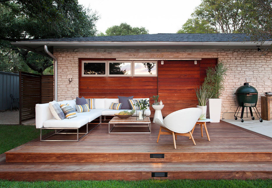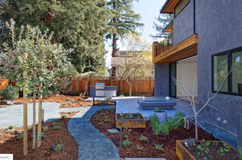 Единственный стиль, который будет естественно смотреться с искусственными материалами. Дизайн садового участка своими руками в этом наиболее передовом стиле оформления поражает массой последних достижений техники и науки, сочетание симметрии и ее противоположности, лаконичностью форм, простотой цветовой гаммы.