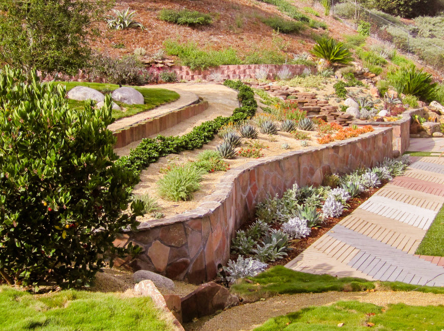Идеально подойдет такой дизайн для участка, расположенного на склоне. А для территории с уступами станет практически единственным способом создать что-то необычное.