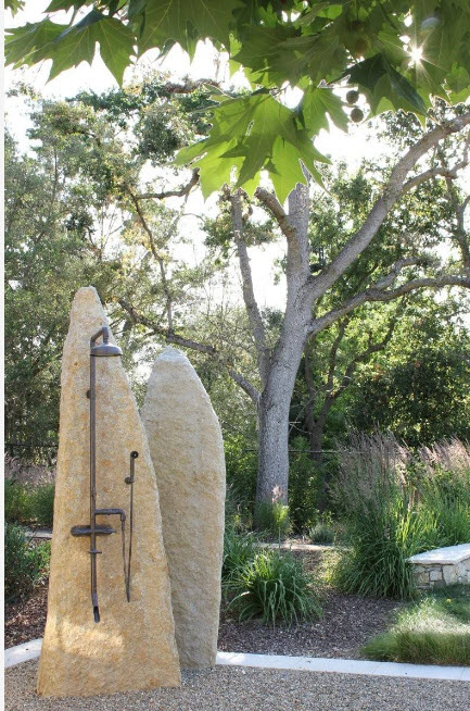 Стиль слегка напоминает своего японского родственника. Здесь так же важно сочетание камней, воды и растений, но явная красота стиля достигается путем сочетания противоположностей.