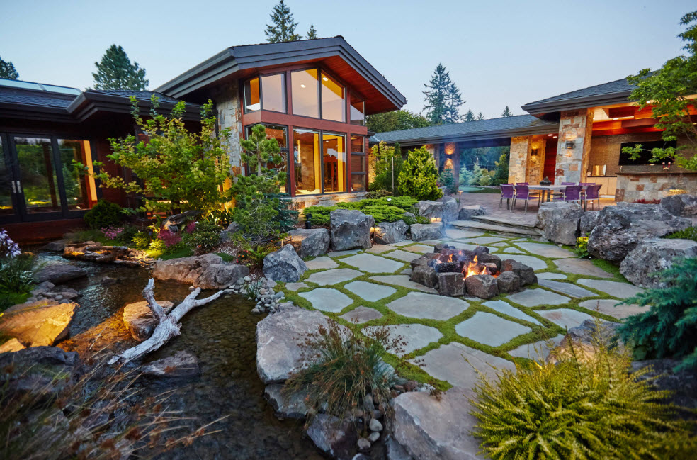 Если дом уже стоит, то выбор ландшафтного дизайна будет несколько ограничен: дом и участок должны быть выполненными в едином оформлении.