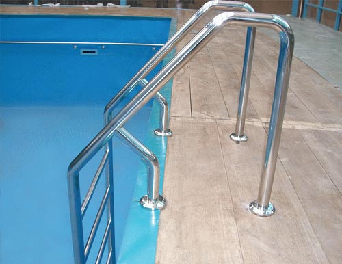 Вариантов хромированных лестниц очень много как по внешнему дизайну так и по функциональности, можно купить готовую. А можно при помощи сварочного аппарата и металла сделать самим. Выбрать подходящий чертеж, отмерить детали и приварить друг к другу. Детали также можно крепить оцинкованными болтами. Обычно такая лестница имеет вид стремянки. Металл обрабатывается антикоррозийными веществами. Ступени покрываются противоскользящим материалом. На каждую ногу металлической лестницы одевается резиновая накладка, чтобы исключить повреждение облицовки чаши. Такая лестница будет надежной и сможет выдерживать большую нагрузку.