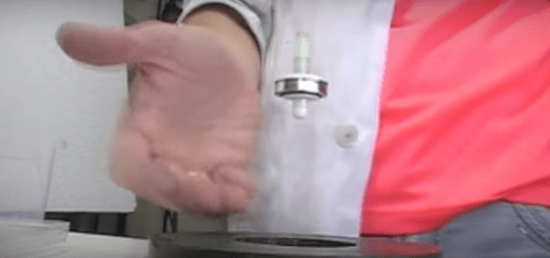 Затем пластину медленно поднимают, потом опускают и убирают прочь — гироскоп остаётся висеть в воздухе, вращаясь и немного покачиваясь.