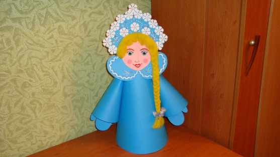 Получился интересный колпак для украшения новогодней елки или для Деда Мороза. Можно приклеить помпон из ваты.