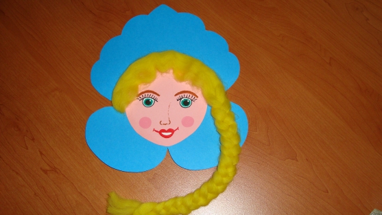 - Затем готовую деталь для лица нужно приклеить на треугольник таким образом, чтобы получился образ. Пропорции должны быть выбраны самостоятельно.